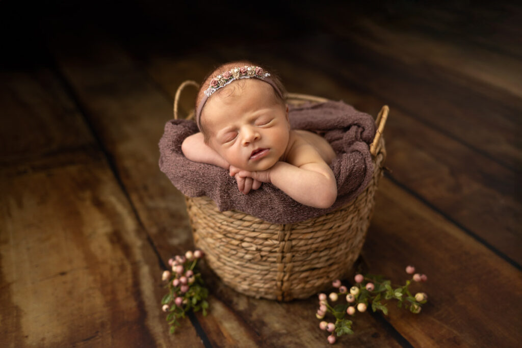 La séance Naissance dure environ 3 heures, pendant lesquelles votre bébé sera placé dans divers décors tels que des seaux, des paniers, ou des caisses en bois, ainsi que dans différentes positions sur la table de posing spécialement conçue.